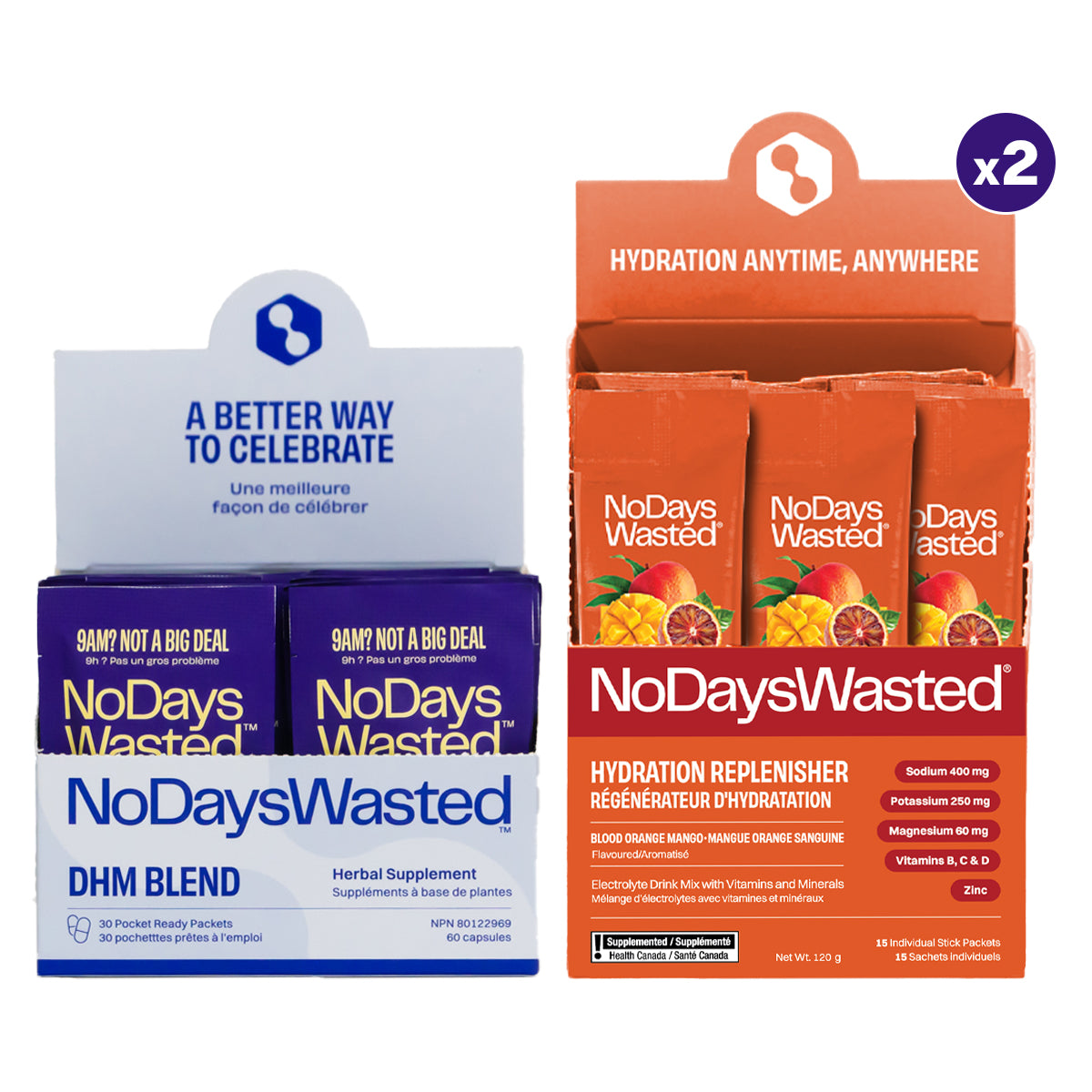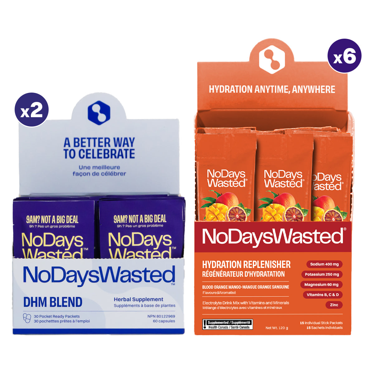 Combining the DHM Blend Purple Packets and Hydration Replenisher electrolyte mix, we've created the ultimate recovery combo to help you feel your best the morning after celebrating.
